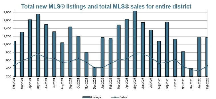 "February's sales definitely picked up the pace compared with sales from the previous month,” said Victoria Real Estate Board Chair Fergus Kyne. "Though our sales numbers are lower than they were in 2025, with an over 35 per cent increase month over month, and a very healthy amount of inventory currently available, it will be interesting to see how our spring market unfolds in the upcoming months."